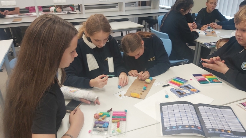 saulės sistemos planetas bei susipažinę su pagrindiniais temos vokiškais žodžiais, grupėse iš plastilino lipdė planetas, išdėstė jas eilės tvarka ir pristatė bei skaičiavo vokiškai. Šiose praktinėje