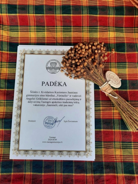 Balandžio 9 d. antradienį vykome į Norkaičius. Nepaprastai šiltą pavasario vakarą praleidome Tauragės apskrities tradicinių šokių vakaronėje „Jaunimėli, eikš pas mus".